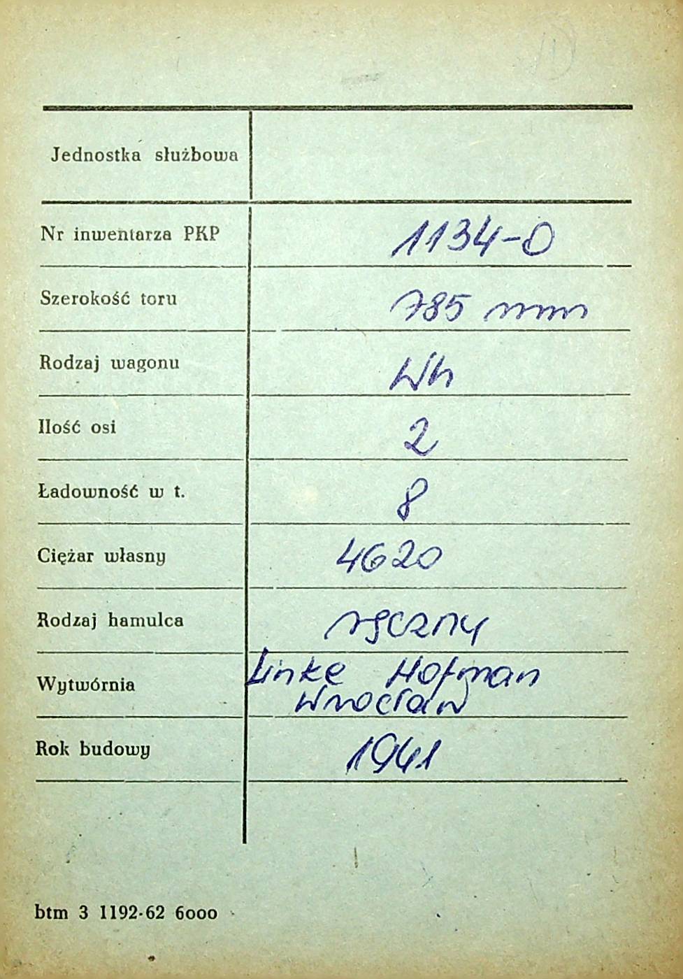 Karta wagonu Górnośląskich Kolei Wąskotorowych |