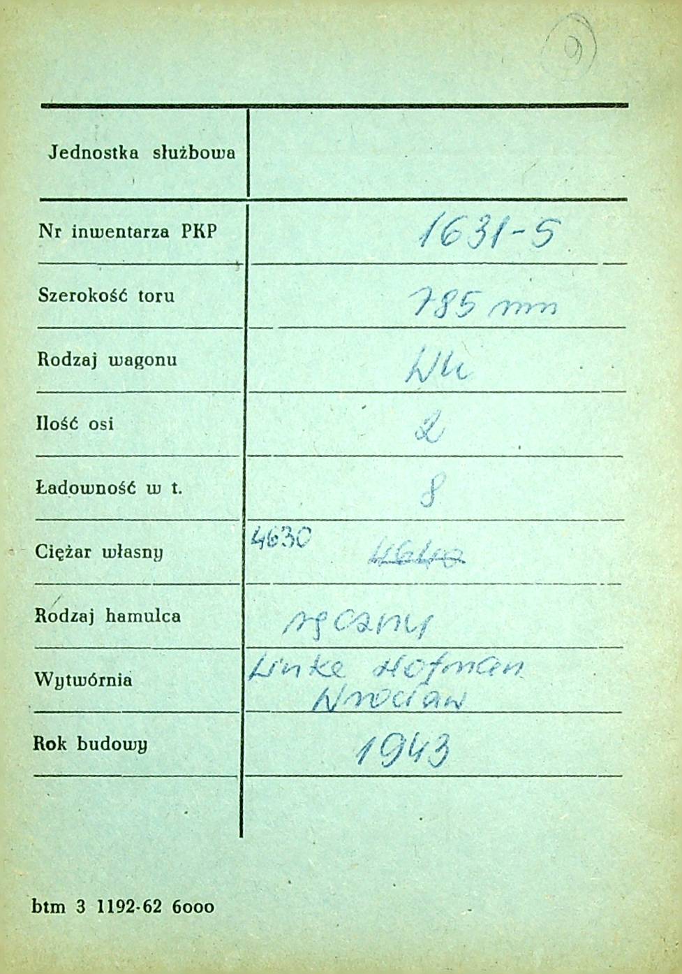 Karta wagonu Górnośląskich Kolei Wąskotorowych |