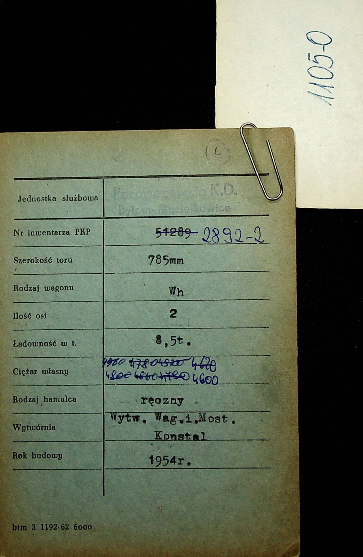 Karta wagonu Górnośląskich Kolei Wąskotorowych |