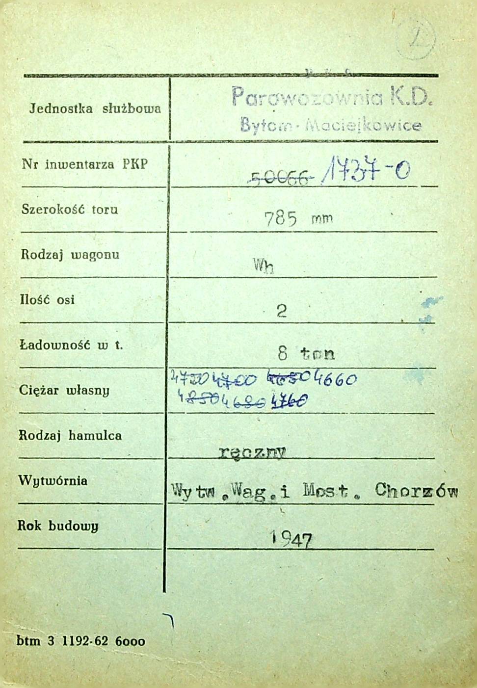 Karta wagonu Górnośląskich Kolei Wąskotorowych |