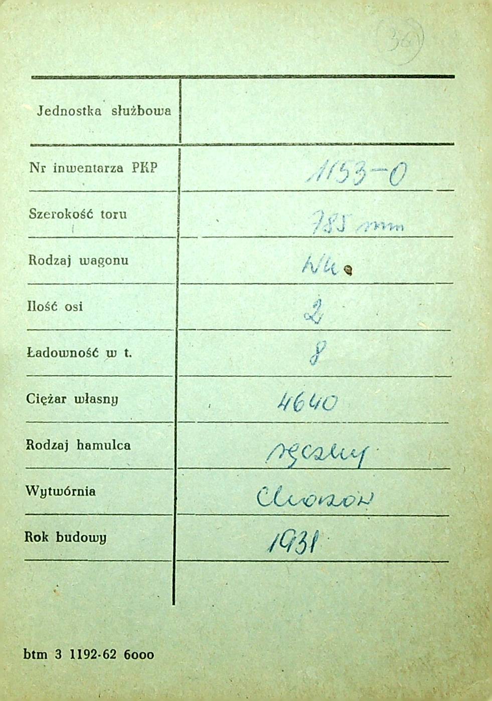 Karta wagonu Górnośląskich Kolei Wąskotorowych |