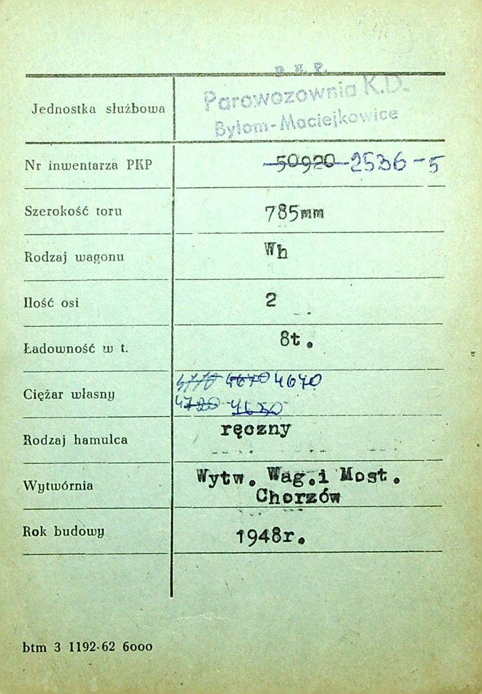 Karta wagonu Górnośląskich Kolei Wąskotorowych |