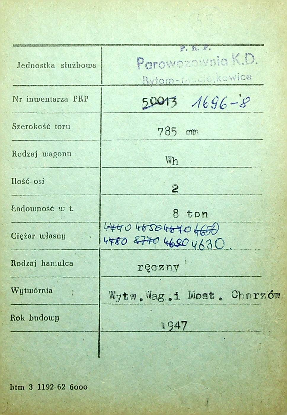 Karta wagonu Górnośląskich Kolei Wąskotorowych |