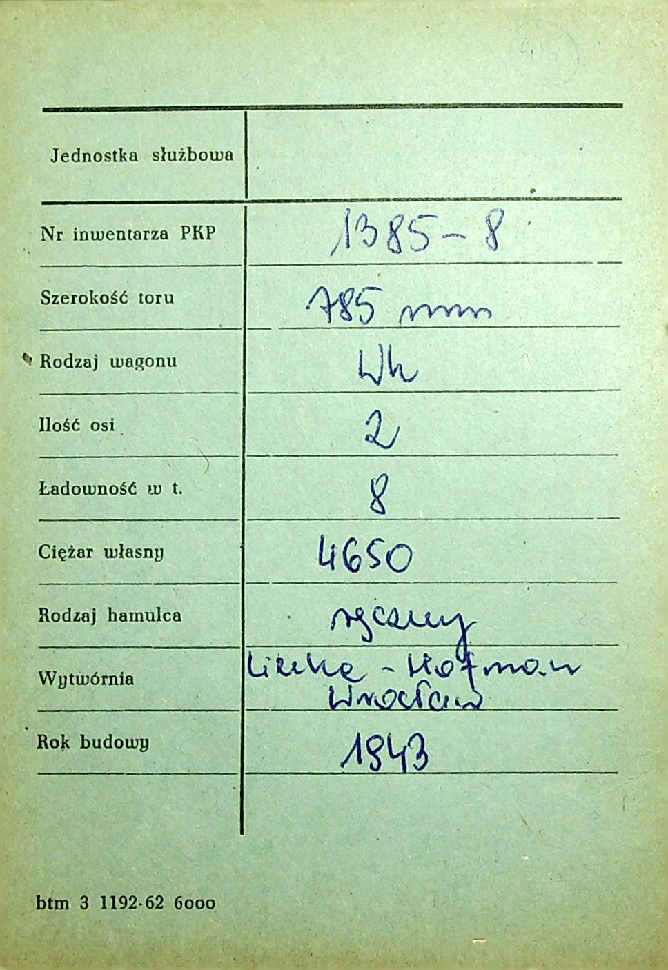 Karta wagonu Górnośląskich Kolei Wąskotorowych |