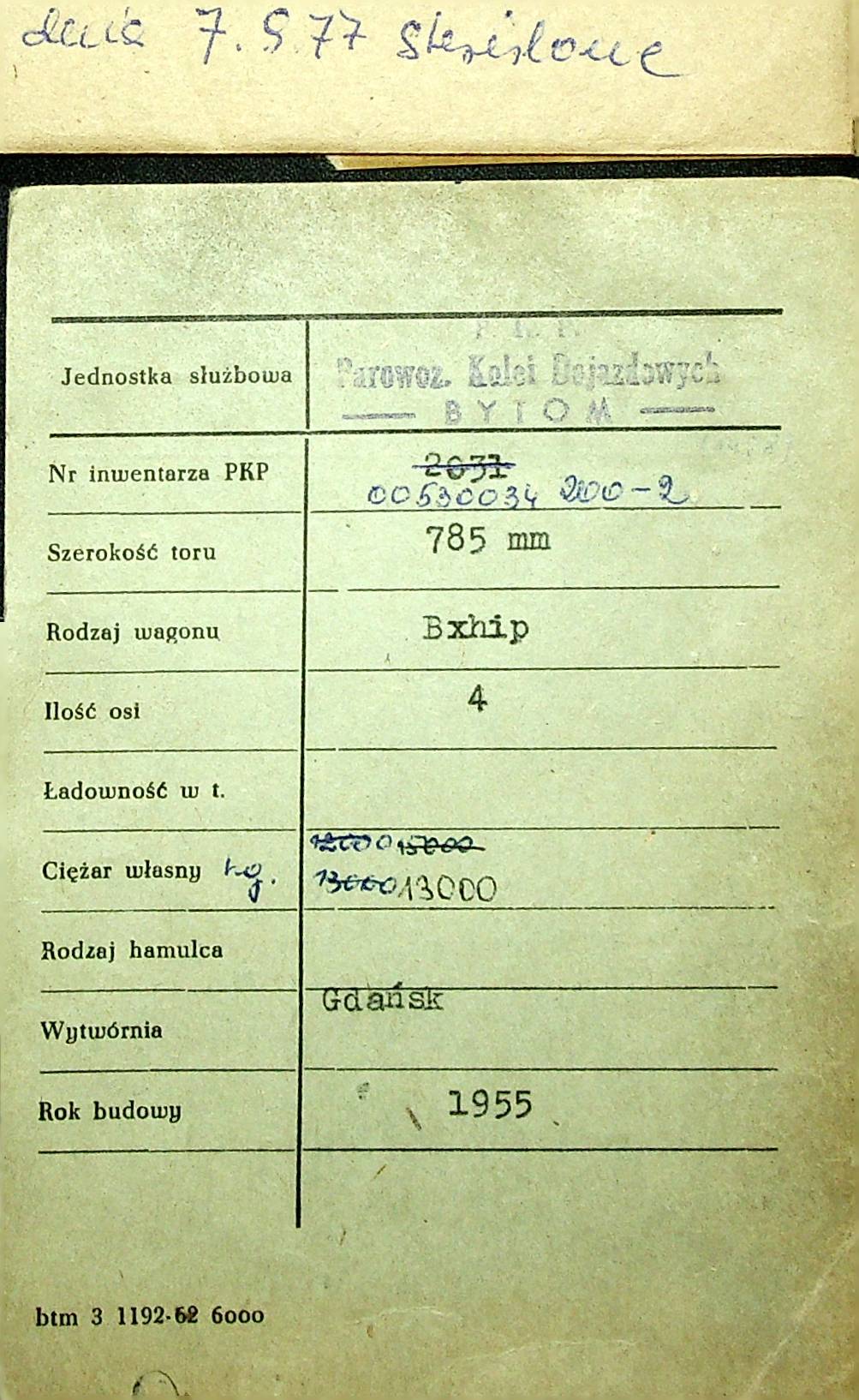Karta wagonu Górnośląskich Kolei Wąskotorowych |