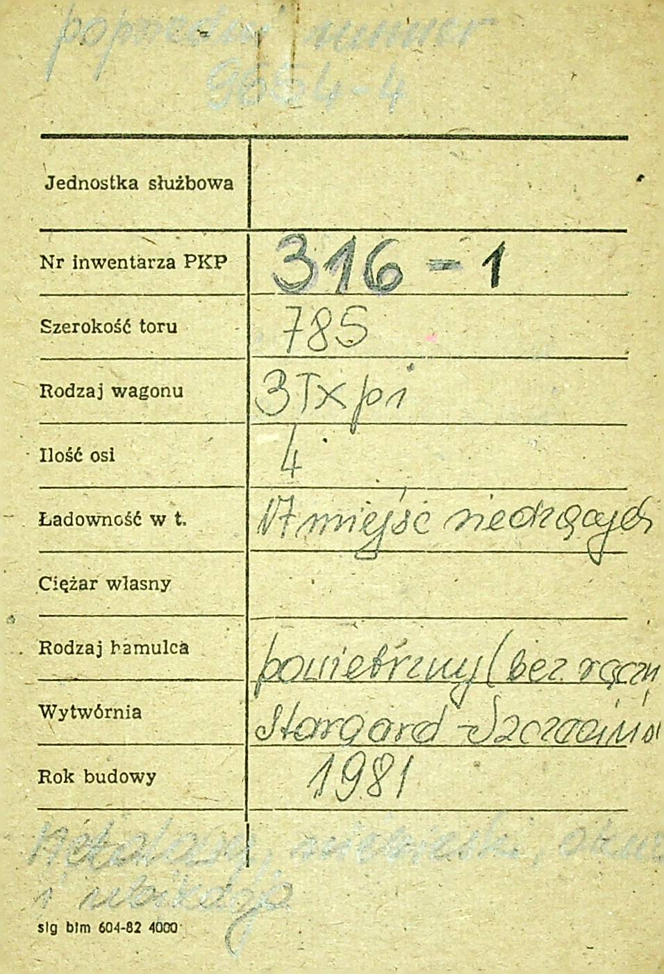 Karta wagonu Górnośląskich Kolei Wąskotorowych |