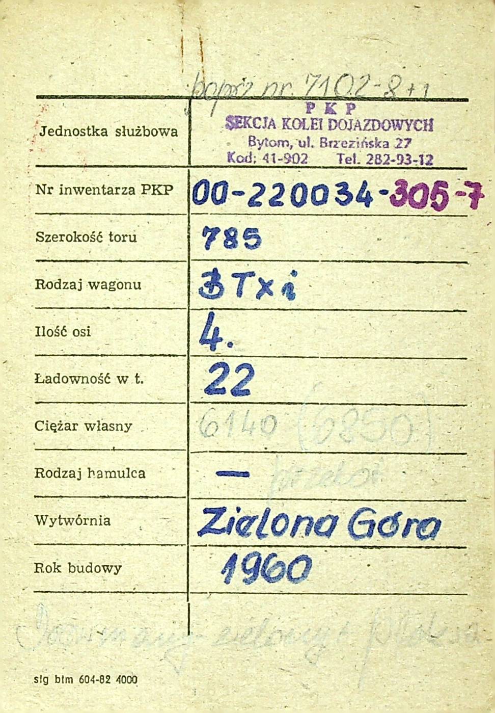 Karta wagonu Górnośląskich Kolei Wąskotorowych |
