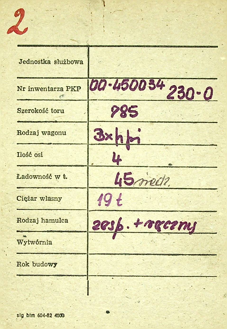 Karta wagonu Górnośląskich Kolei Wąskotorowych |