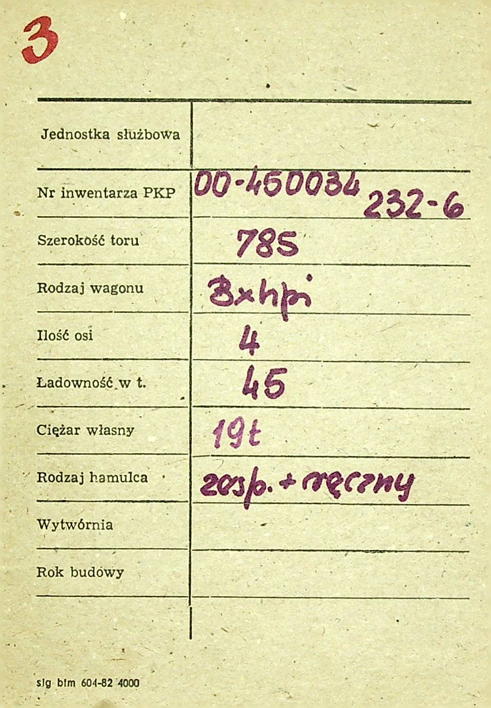 Karta wagonu Górnośląskich Kolei Wąskotorowych |