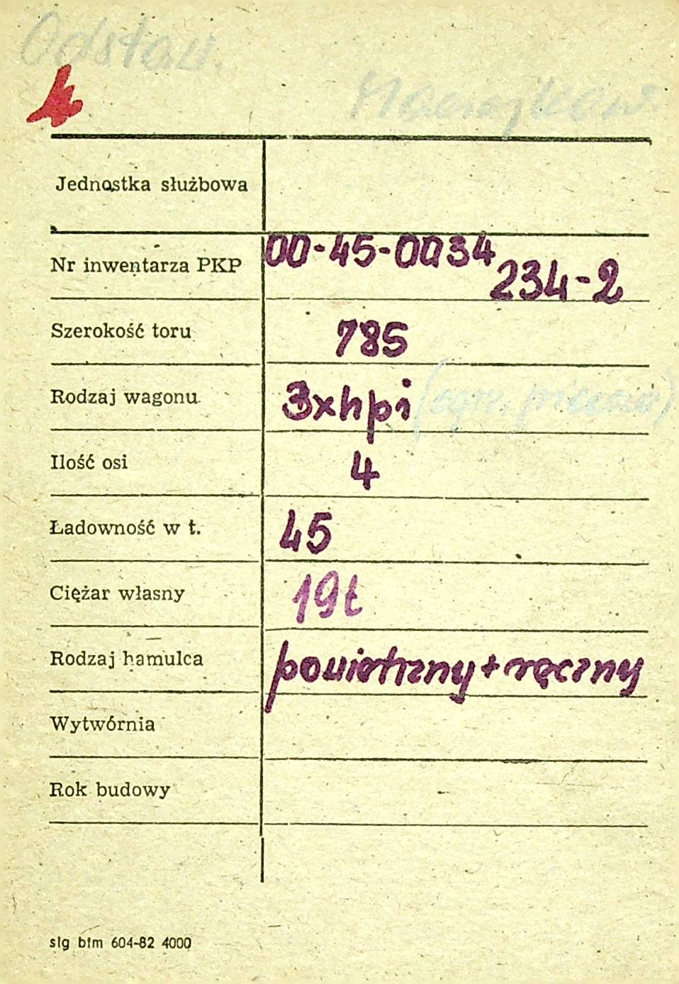 Karta wagonu Górnośląskich Kolei Wąskotorowych |