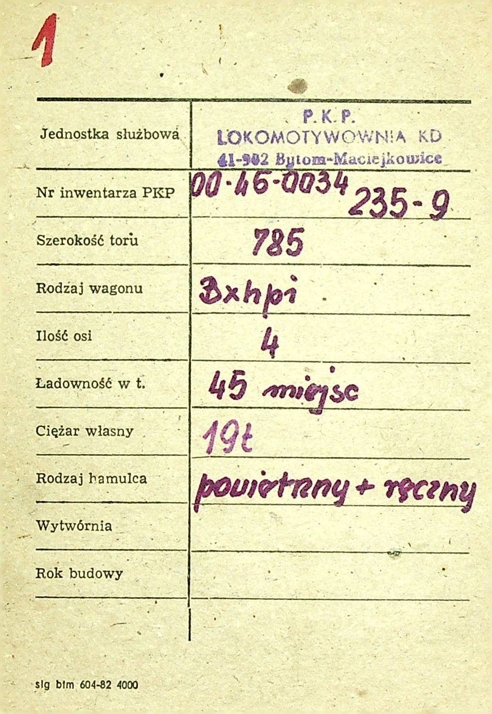 Karta wagonu Górnośląskich Kolei Wąskotorowych |