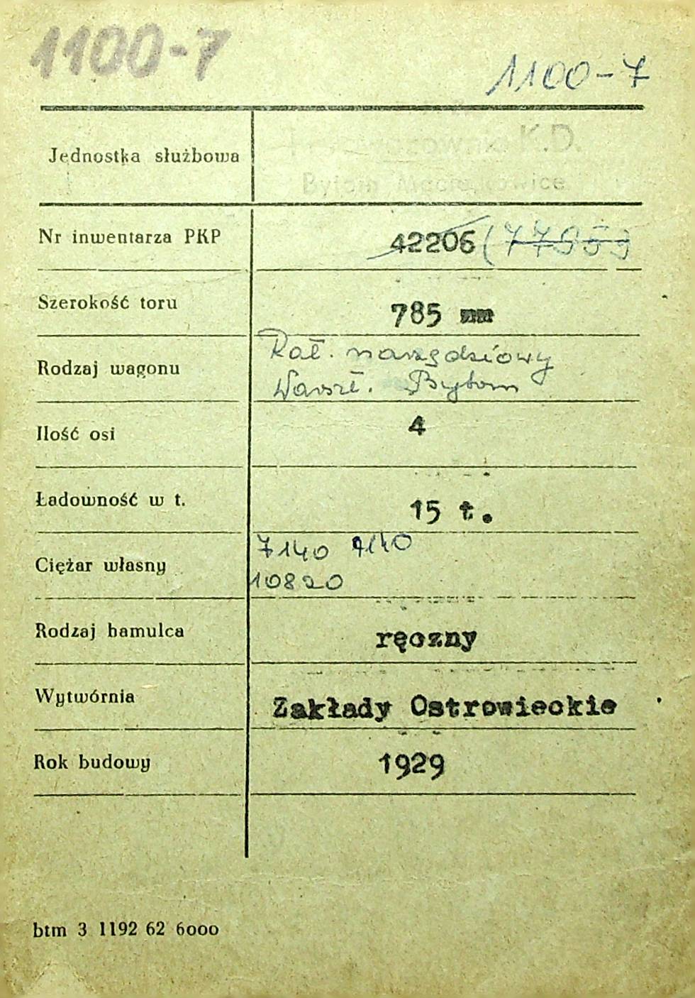 Karta wagonu Górnośląskich Kolei Wąskotorowych |