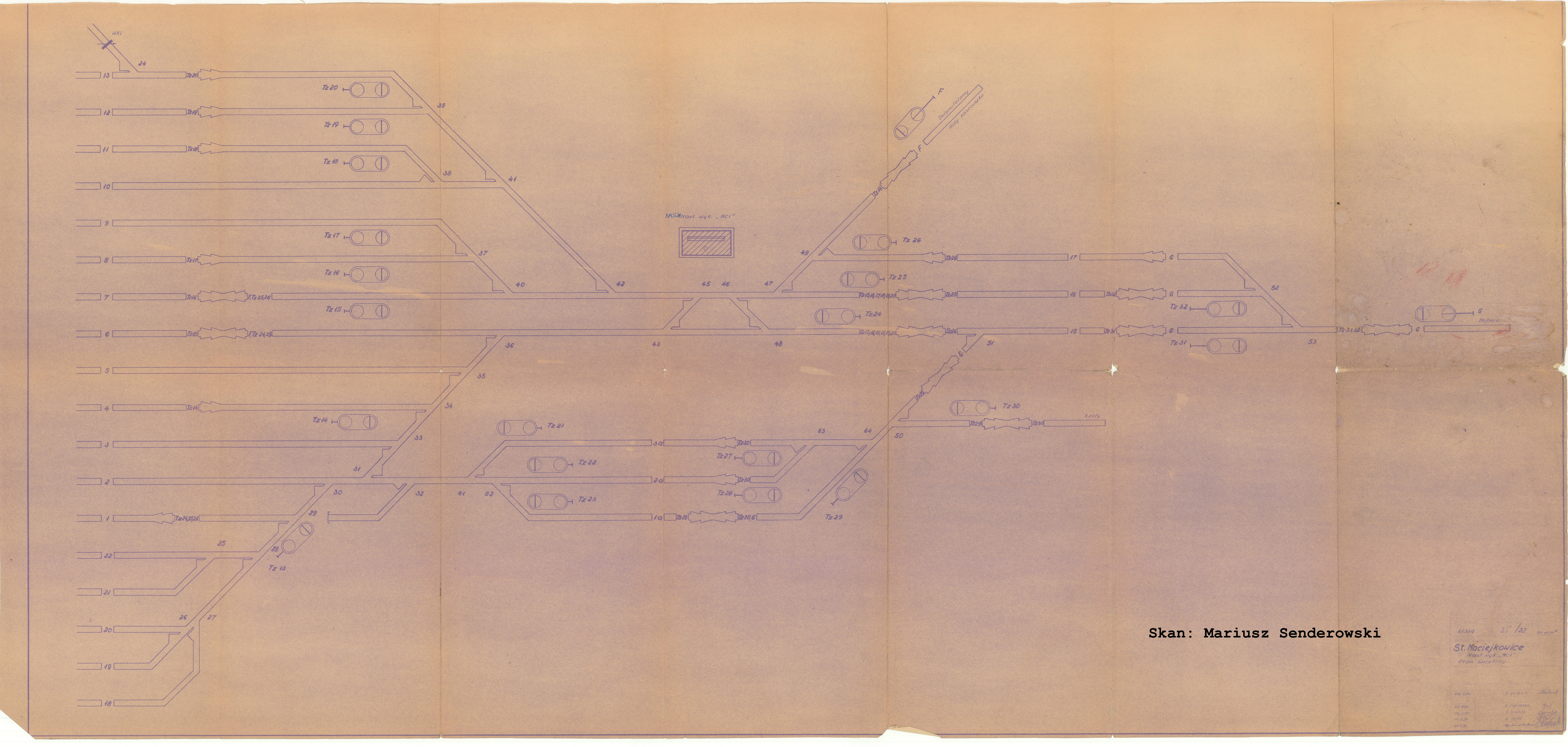 Projekt planu świetlnego nastawni Mc1 stacji Maciejkowice sporządzony w 1962 roku