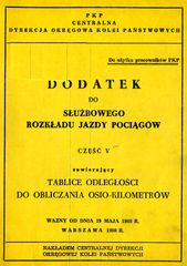 Dodatek do służbowego rozkładu jazdy, część V, zawierający tablice do obliczania osiokilometrów ważny od 29 maja 1988. Wydawca: Polskie Koleje Państwowe – Centralna Dyrekcja Kolei Państwowych, Warszawa 1988