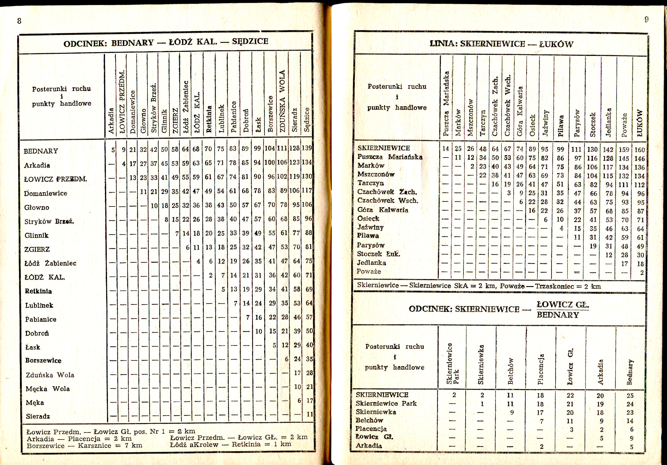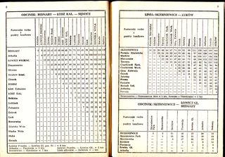 Dodatek do służbowego rozkładu jazdy, część V, zawierający tablice do obliczania osiokilometrów ważny od 29 maja 1988. Wydawca: Polskie Koleje Państwowe – Centralna Dyrekcja Kolei Państwowych, Warszawa 1988