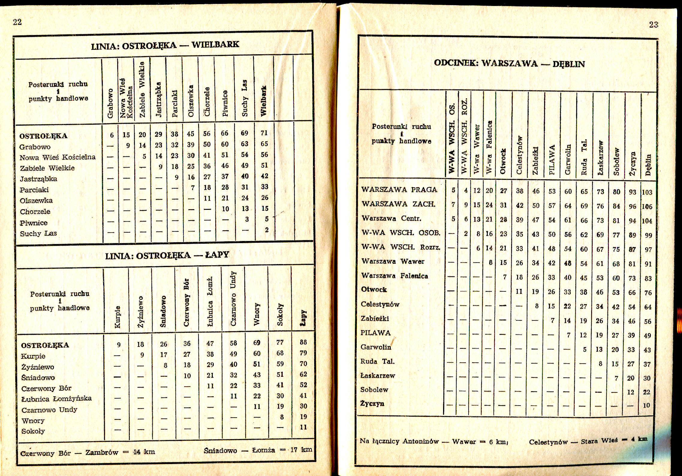 Dodatek do służbowego rozkładu jazdy, część V, zawierający tablice do obliczania osiokilometrów ważny od 29 maja 1988. Wydawca: Polskie Koleje Państwowe – Centralna Dyrekcja Kolei Państwowych, Warszawa 1988