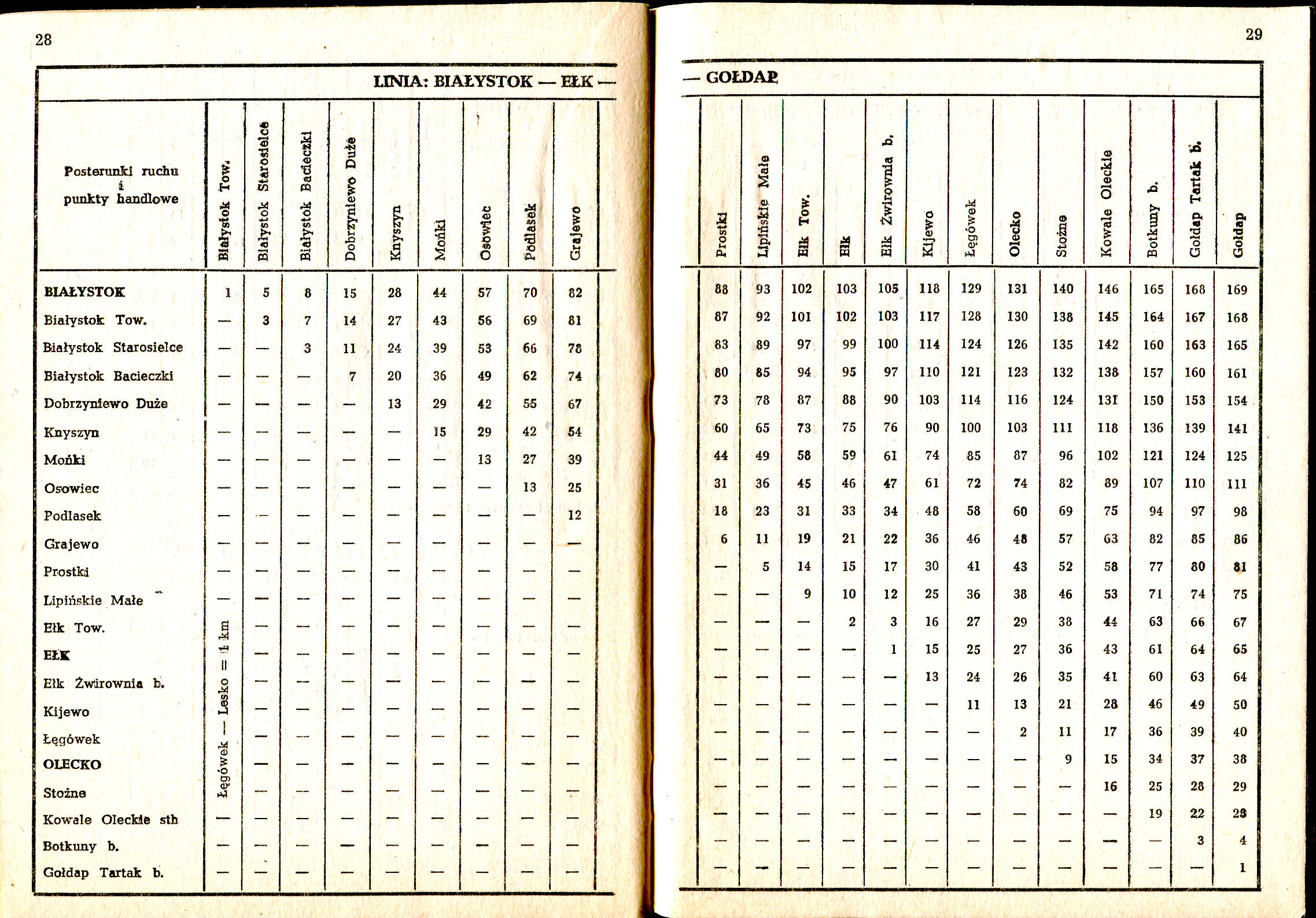Dodatek do służbowego rozkładu jazdy, część V, zawierający tablice do obliczania osiokilometrów ważny od 29 maja 1988. Wydawca: Polskie Koleje Państwowe – Centralna Dyrekcja Kolei Państwowych, Warszawa 1988