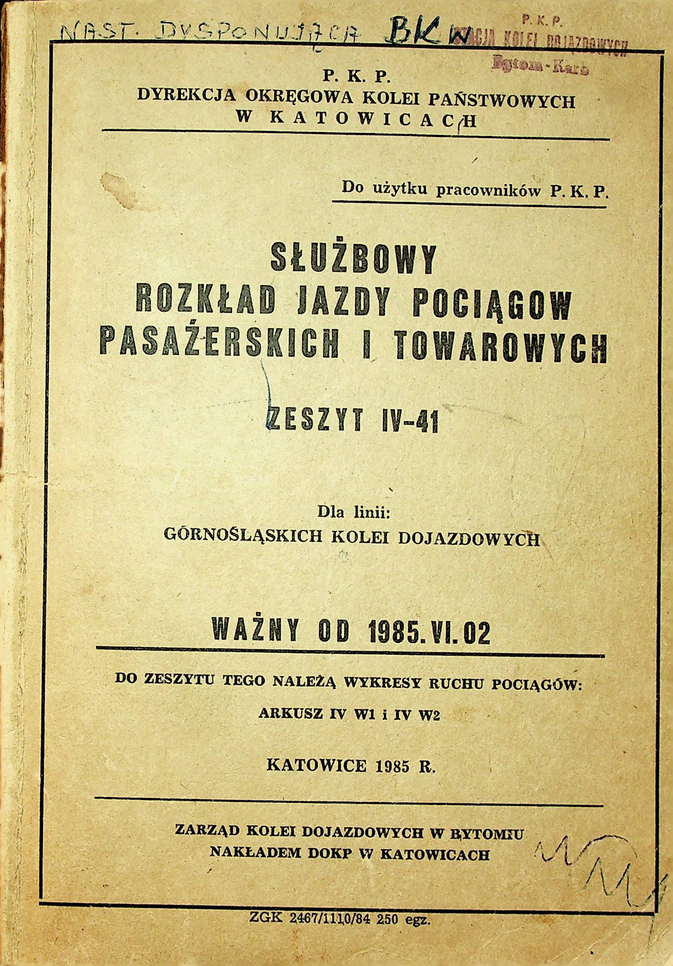 | Tytuł | Służbowy Rozkład Jazdy Górnośląskich Kolei Wąskotorowych (1985) | ||