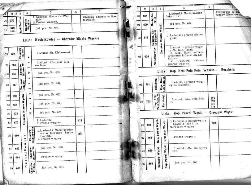 Służbowy rozkład jazdy polskiej części Górnośląskich Kolei Wąskotorowych z roku 1936 - strony 46-47