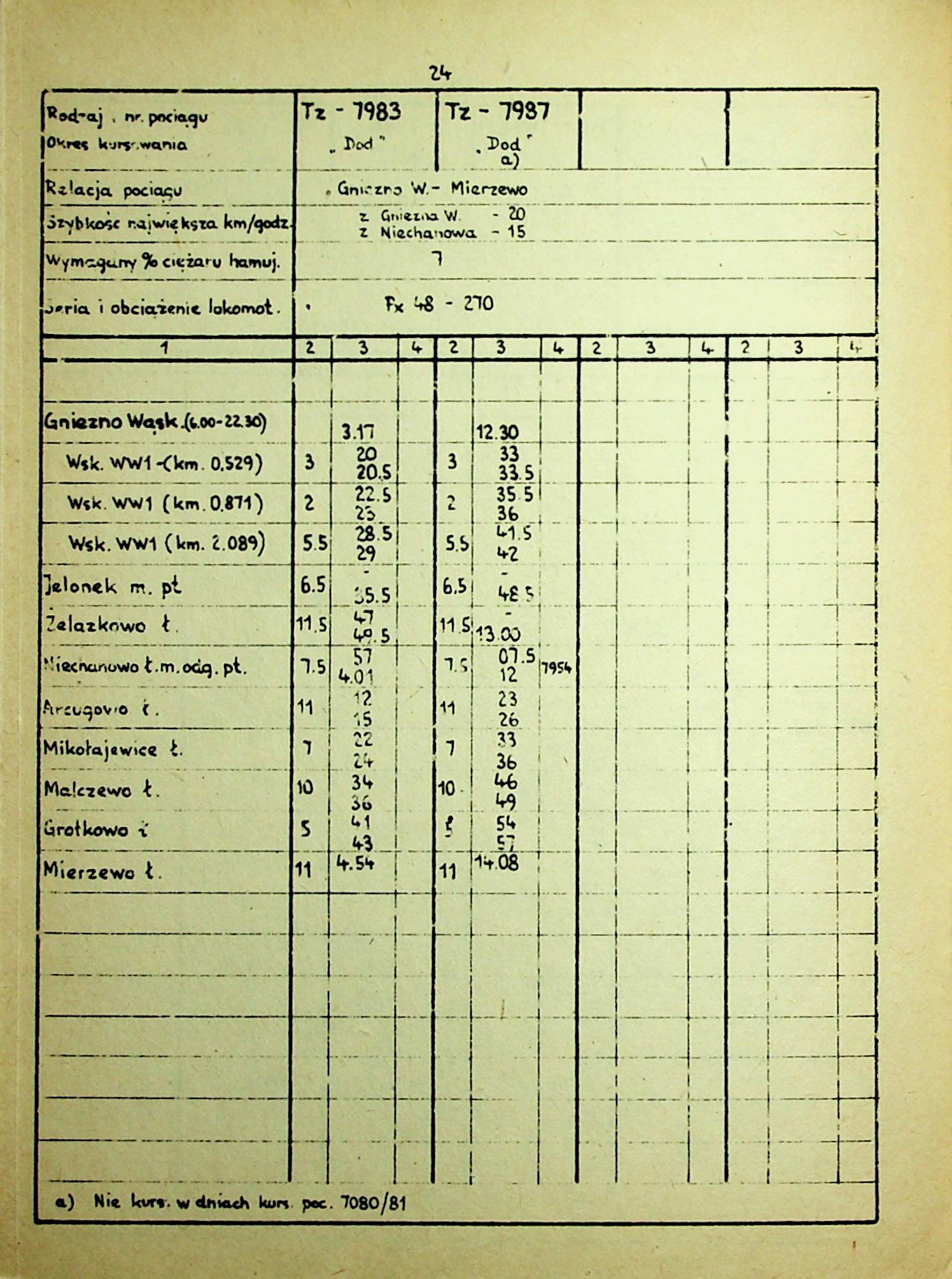 | Tytuł | Służbowy Rozkład Jazdy dla linii Gniezno Wąsk. - Anastazewo itp. (1984) | ||