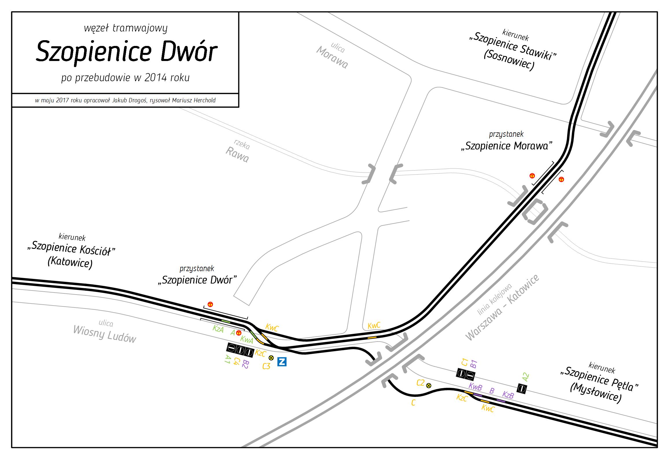 Węzeł tramwajowy Szopienice Dwór po przebudowie w roku 2014