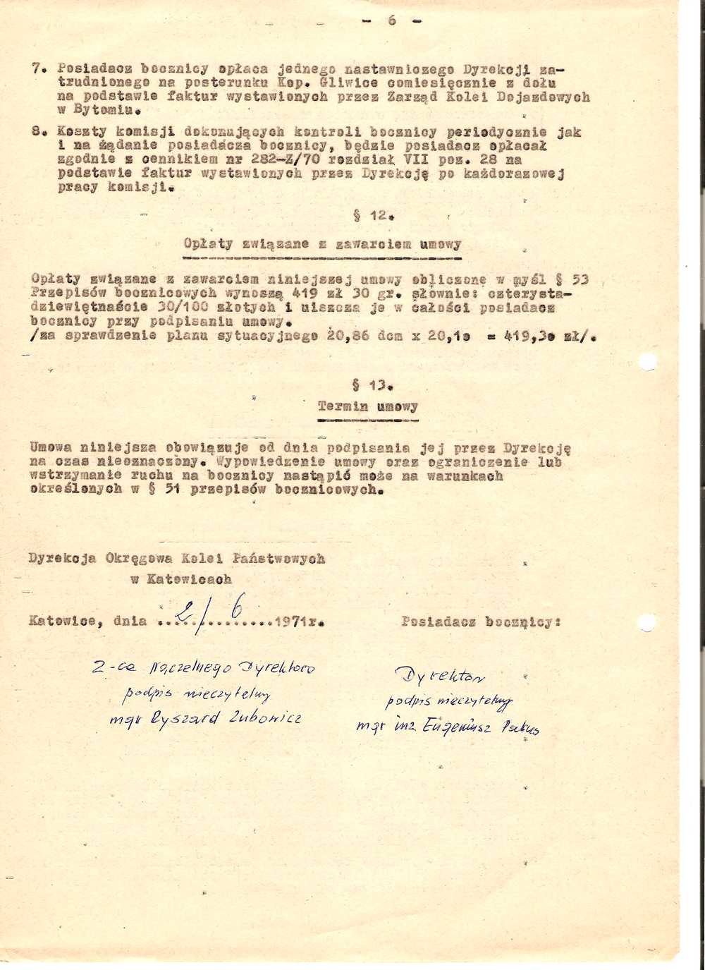 Umowa bocznicowa dotycząca bocznicy wąskotorowej KWK "Gliwice", rok 1971, str. 6