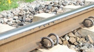 | Opis | Smar na krawędzi główki szyny - widoczne "odbicie" punktów smarujących z listew | ||