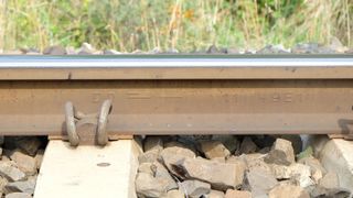 | Opis | Widok szyny na początku łuku - szyna twarda z huty Donawitz (Österreichisch-Alpine Montangesellschaft) | ||