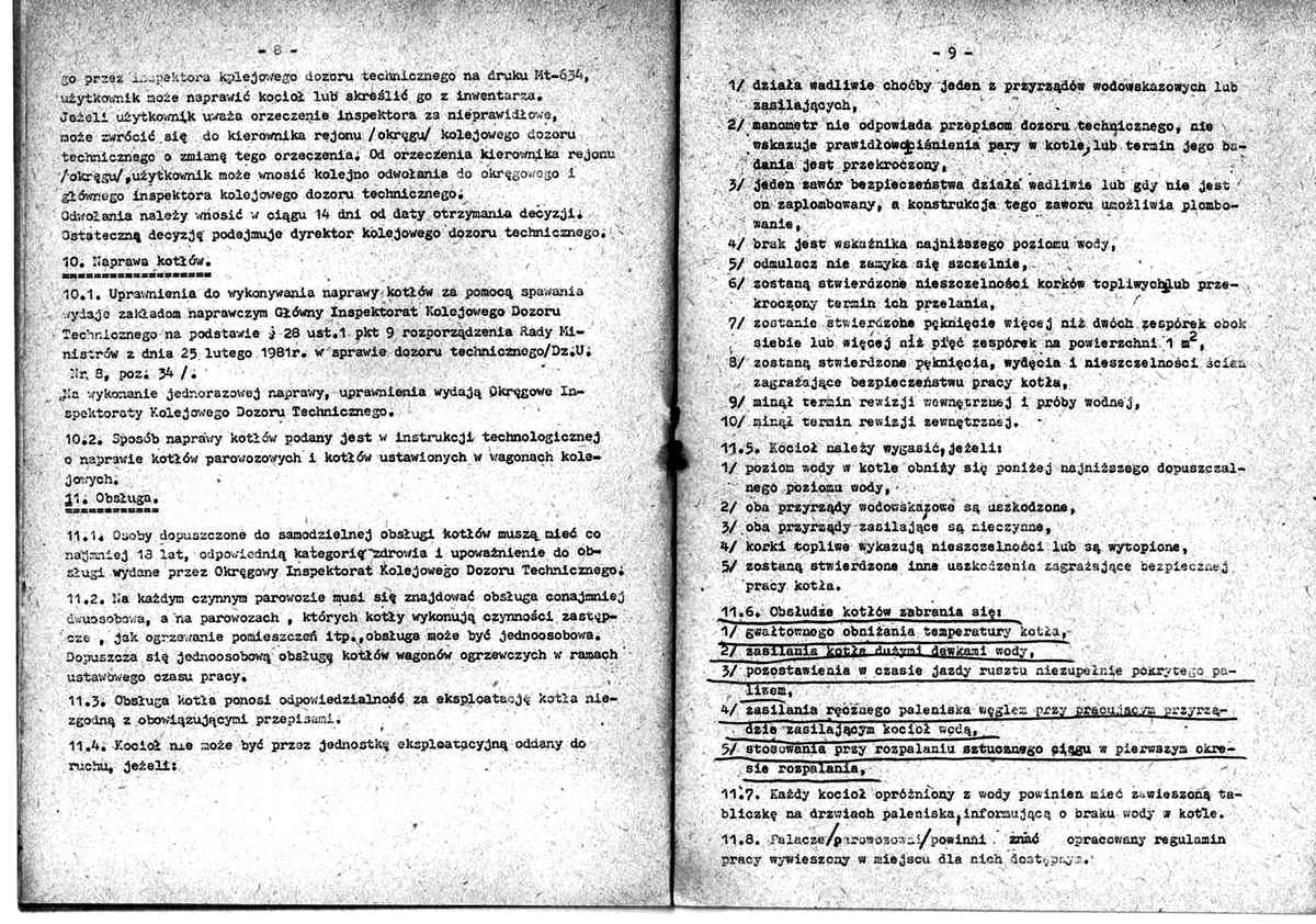 KPa-84 - Warunki techniczne eksploatacji kotłów parowozowych i kotłów ustawionych w wagonach kolejowych oraz wykonywania dozoru technicznego nad tymi kotłami zatwierdzone Zarządzeniem nr 2 Dyrektora Głównego Inspektoratu Kolejowego Dozoru Technicznego z dnia 20 lutego 1984 R. Zarządzenie wchodzi w życie z dniem 1 maja 1984 r. Nakładem PKP Głównego Inspektoratu Kolejowego Dozoru Technicznego.