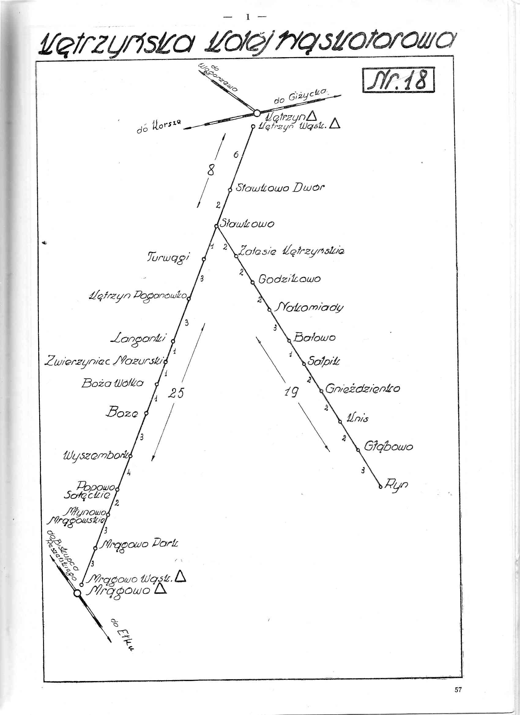 Wykaz odległości taryfowych Polskich Kolei Państwowych, część I, załącznik nr 3: schematyczne mapki i tabele odległości kolei wąskotorowych. Obowiązuje od 1 czerwca 1959. Wydawnictwo Ministerstwa Komunikacji. Mapka Kętrzyńskiej KW