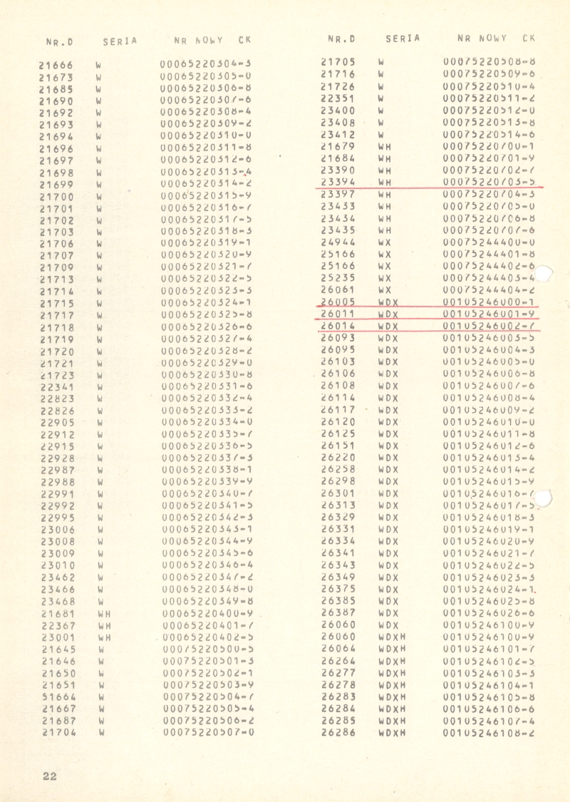 Wykaz wagonów osobowych i towarowych kolei dojazdowych o prześwicie 750 mm ze starą i nową numeracją. Strona 22