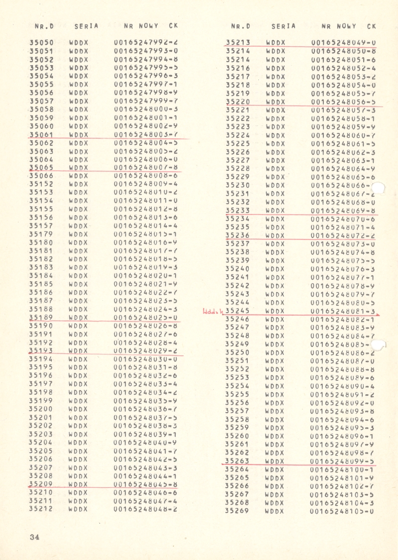 Wykaz wagonów osobowych i towarowych kolei dojazdowych o prześwicie 750 mm ze starą i nową numeracją. Strona 34