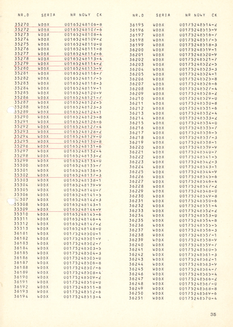 Wykaz wagonów osobowych i towarowych kolei dojazdowych o prześwicie 750 mm ze starą i nową numeracją. Strona 35