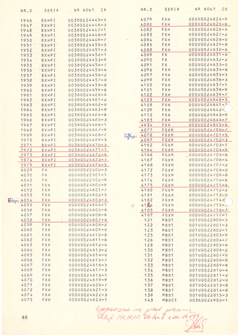 Wykaz wagonów osobowych i towarowych kolei dojazdowych o prześwicie 750 mm ze starą i nową numeracją. Strona 46