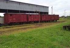 Wagony kryte serii K (tor 1000 mm) na stacji Gryfice Wąskotorowe.