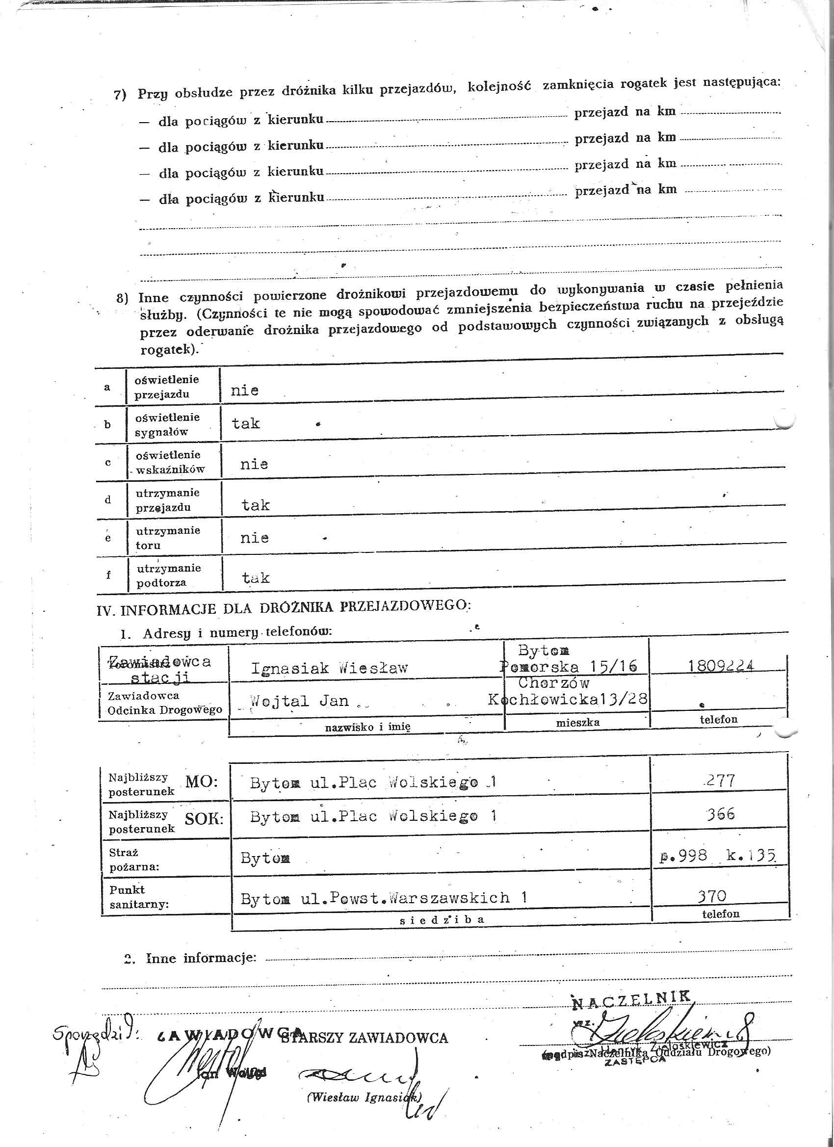 | 22:15, 24 mar 2013 | Oswiecimska3.jpg (plik) | 300 KB | Paweł Niemczuk | Regulamin obsługi przejazdu kolejowego zlokalizowanego na ulicy Oświęcimskiej (Siemianowice Śląskie), linia kolejowa Sucha Góra - Katowice Szopienice. Dokładna data sporządzenia nie jest znana. Najprawdopodobniej lata dziewięćdziesiąte XX wieku | 1 | |