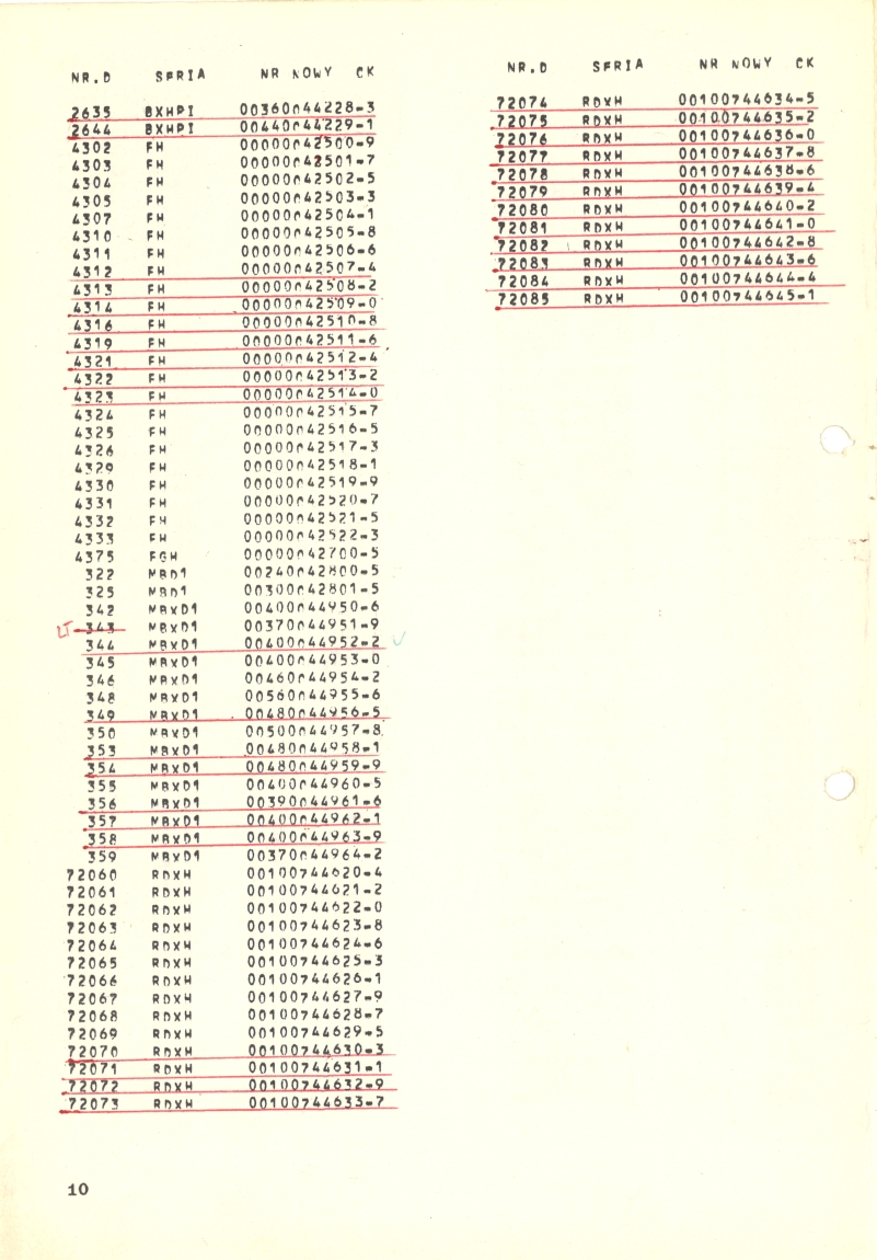 | 10:51, 2 maj 2014 | Wykaz 1000mm 10.jpg (plik) | 519 KB | Jacek Fink-Finowicki | Wykaz wagonów osobowych i towarowych kolei dojazdowych o prześwicie 1000 mm ze starą i nową numeracją. Strona 10 == Licencja == {{PD-symbol}} Kategoria:Archiwum:Wykaz wagonów 1000 mm (1974) | 1 | |
