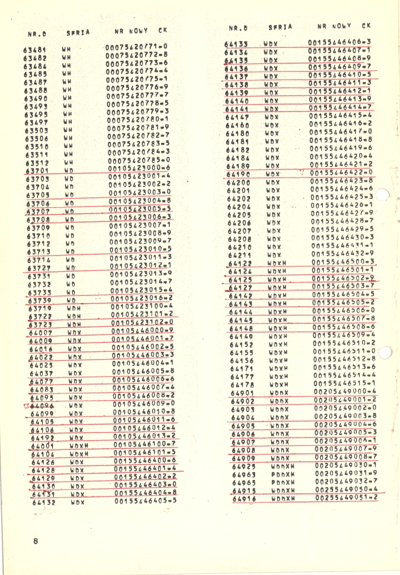 | 11:38, 19 cze 2014 | Wykaz 785mm 16.jpg (plik) | 547 KB | Jacek Fink-Finowicki | Wykaz wagonów osobowych i towarowych kolei dojazdowych o prześwicie 785 mm ze starą i nową numeracją. Strona 16 == Licencja == {{PD-symbol}} Kategoria:Archiwum:Wykaz wagonów 785 mm (1974) | 1 | |