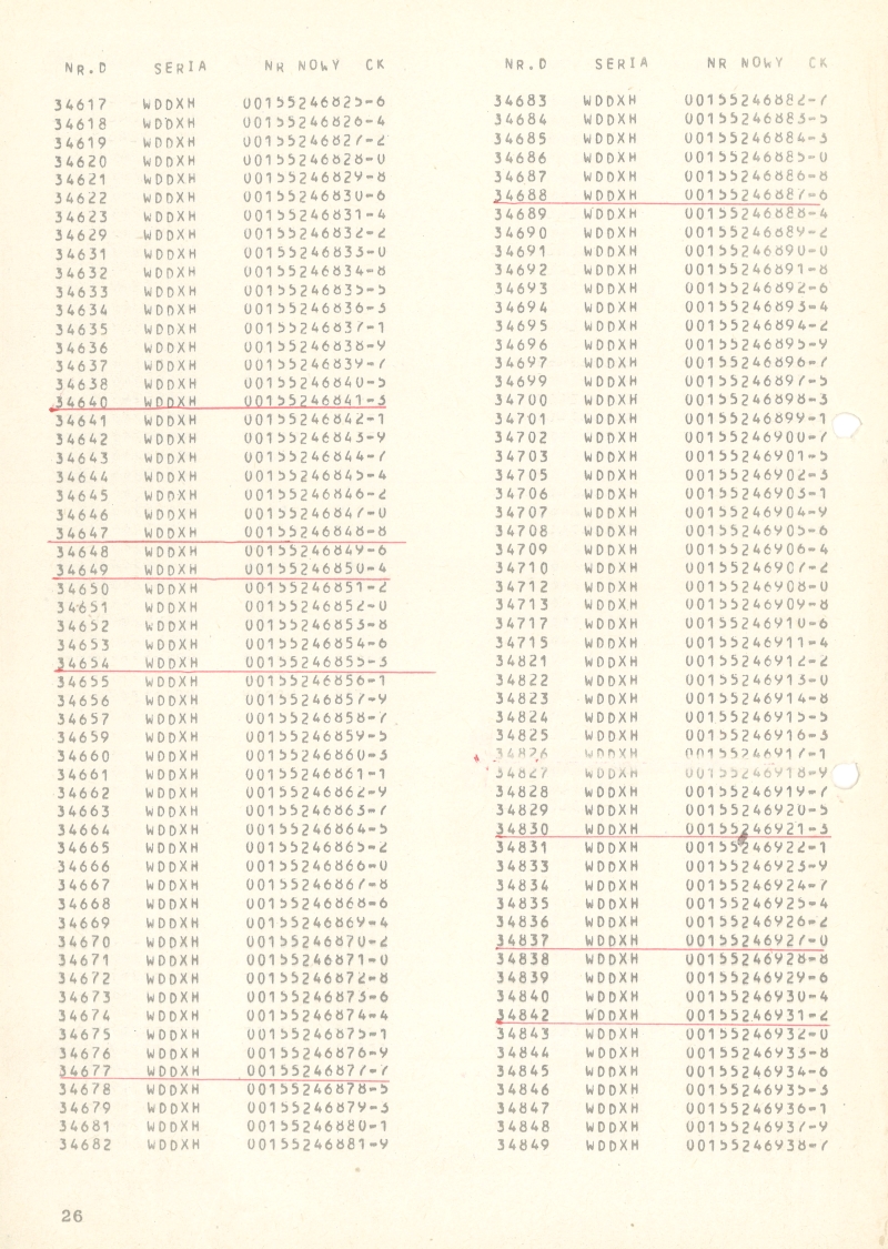 | 14:47, 20 cze 2014 | Wykaz 750mm 26.jpg (plik) | 666 KB | Jacek Fink-Finowicki | Wykaz wagonów osobowych i towarowych kolei dojazdowych o prześwicie 750 mm ze starą i nową numeracją. Strona 26 == Licencja == {{PD-symbol}} Kategoria:Archiwum:Wykaz wagonów 750 mm (1974) | 1 | |
