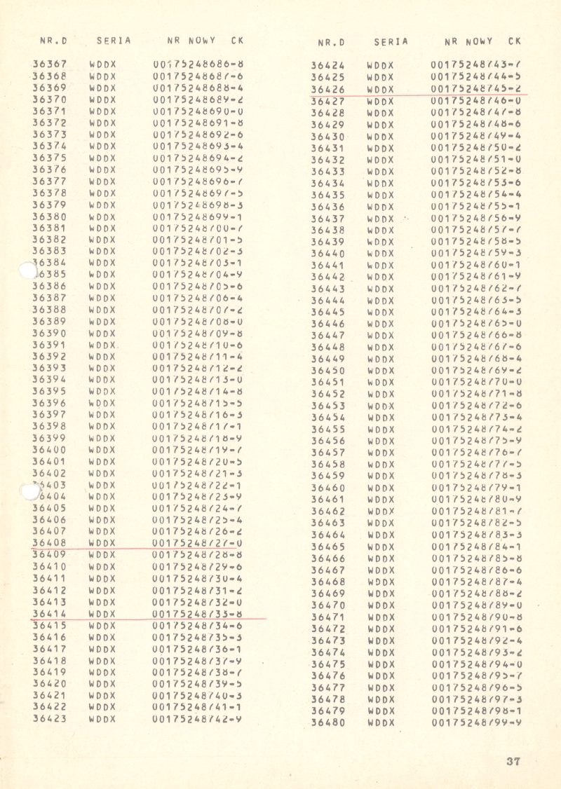 | 15:00, 20 cze 2014 | Wykaz 750mm 37.jpg (plik) | 705 KB | Jacek Fink-Finowicki | Wykaz wagonów osobowych i towarowych kolei dojazdowych o prześwicie 750 mm ze starą i nową numeracją. Strona 37 == Licencja == {{PD-symbol}} Kategoria:Archiwum:Wykaz wagonów 750 mm (1974) | 1 | |