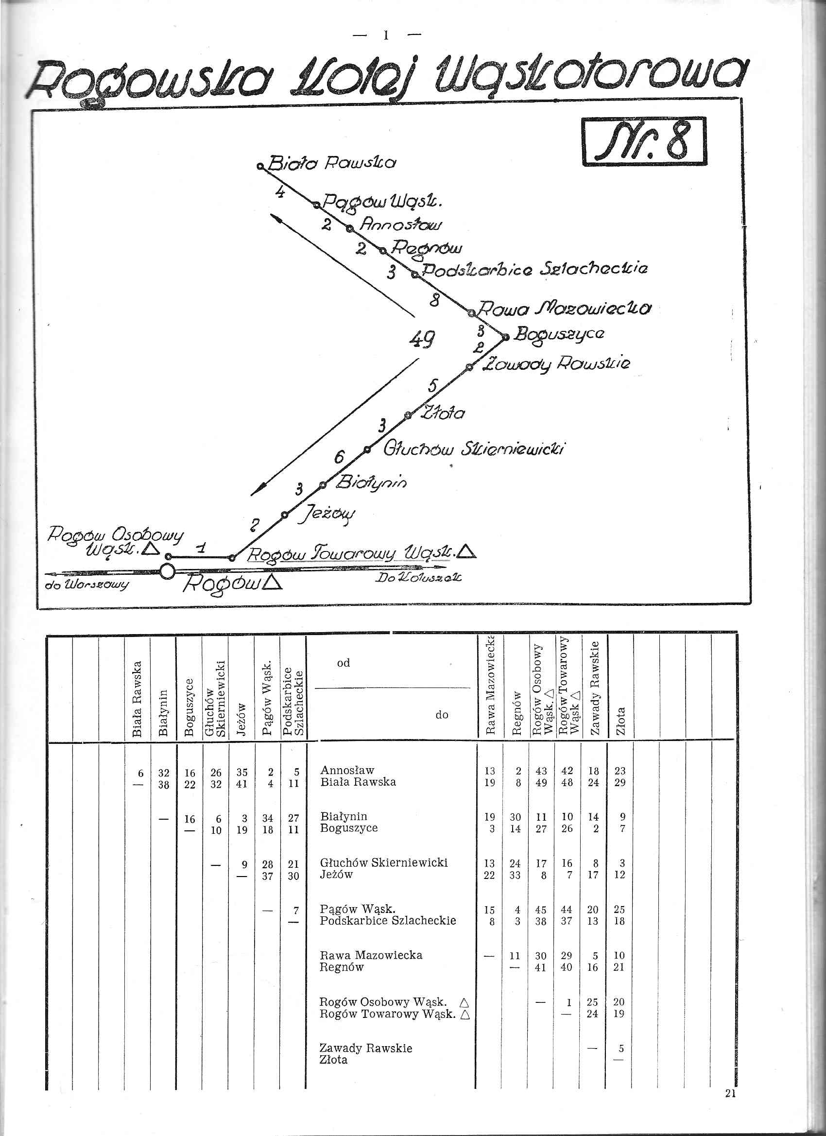 | 13:46, 7 lip 2014 | Wwot8 mla.jpg (plik) | 163 KB | Paweł Niemczuk | Wykaz odległości taryfowych Polskich Kolei Państwowych, część I, załącznik nr 3: schematyczne mapki i tabele odległości kolei wąskotorowych. Obowiązuje od 1 czerwca 1959. Wydawnictwo Ministerstwa Komunikacji. Tabela odległości Mławskiej ... | 1 | |