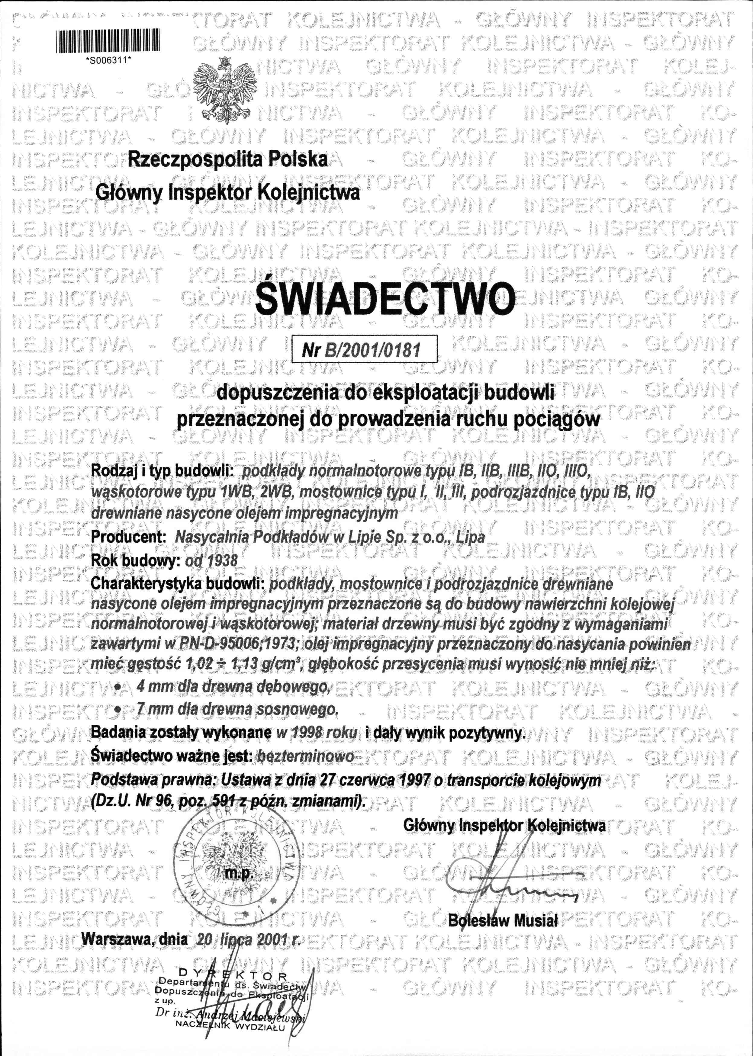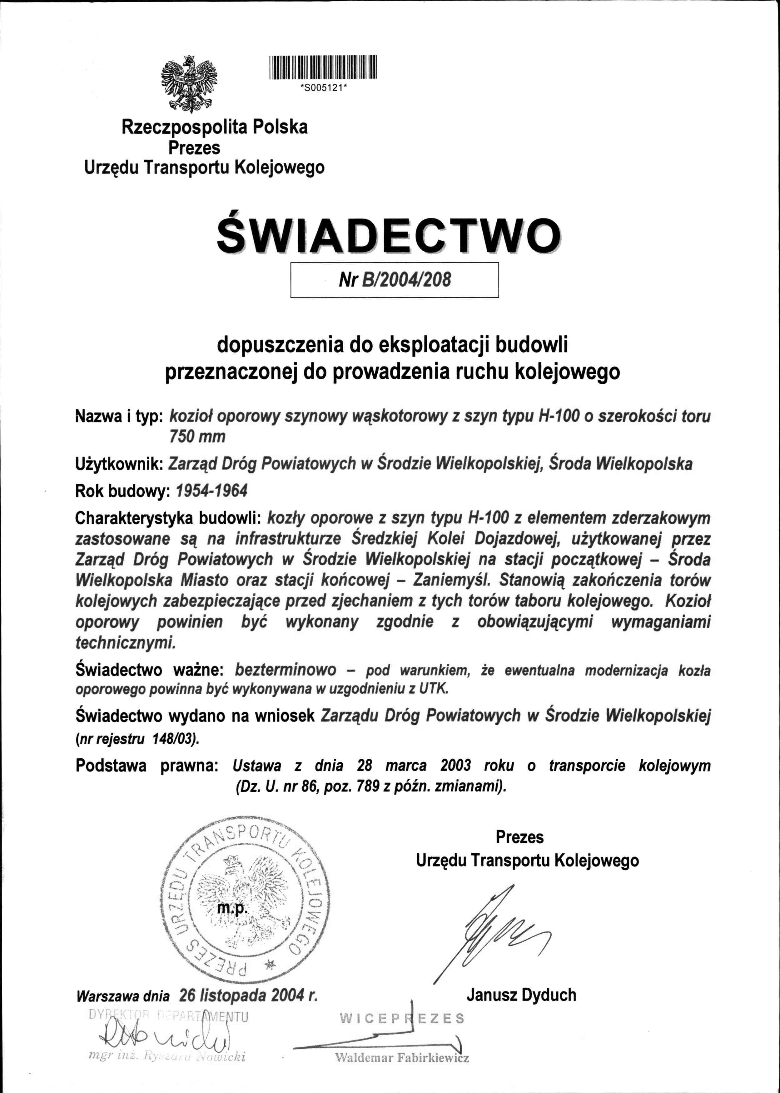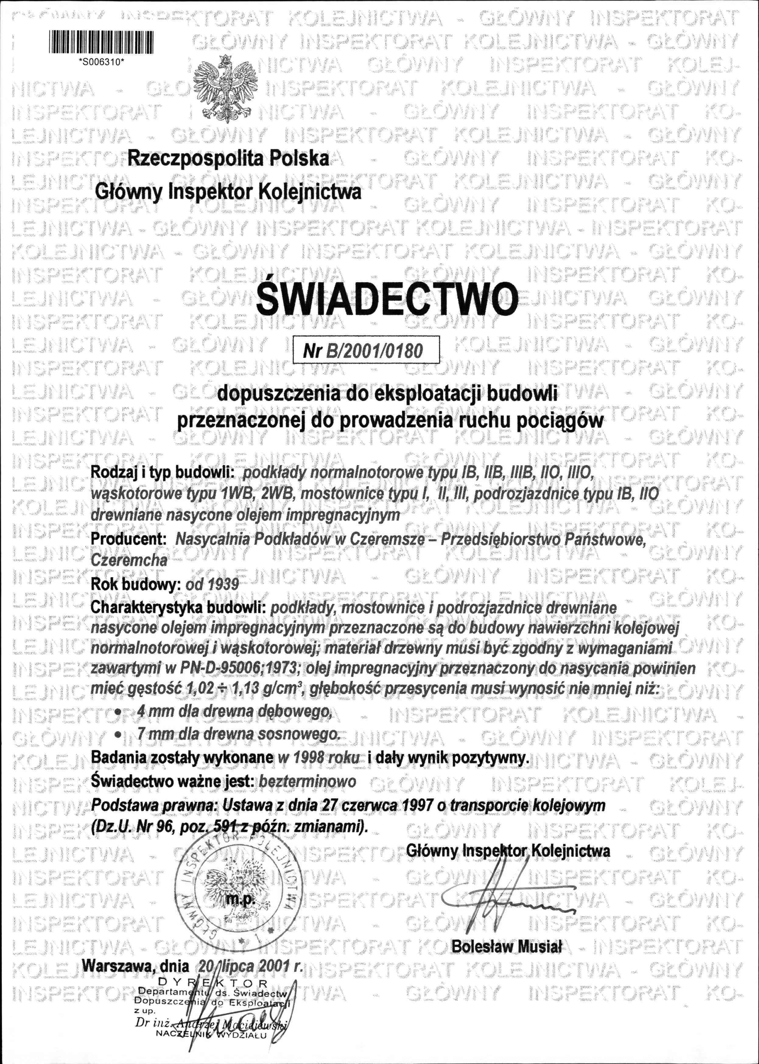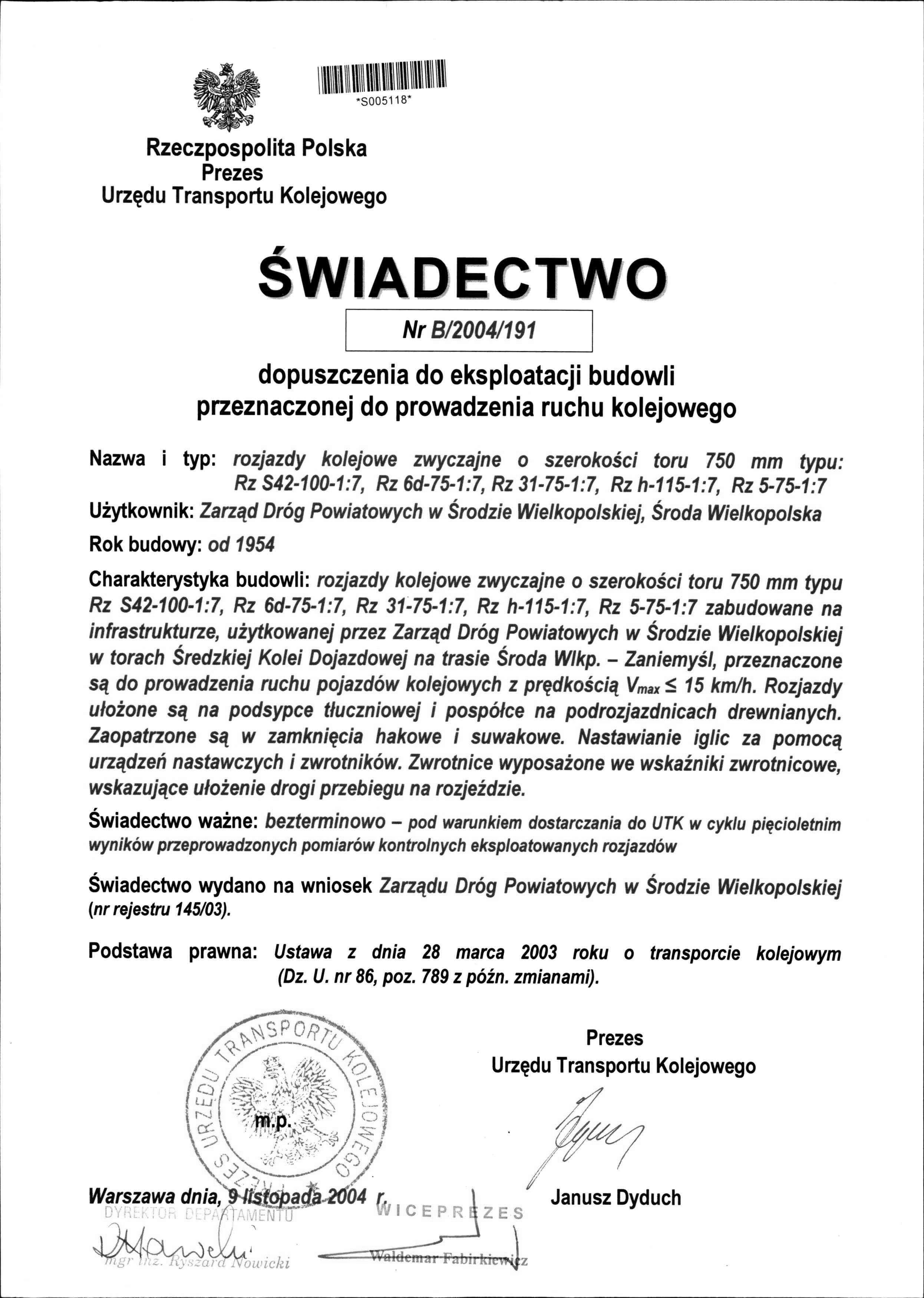 | 21:54, 24 kwi 2014 | B 2001 0324.jpg (plik) | 624 KB | Świadectwo typu nr B/2001/0324 | 1 | |
