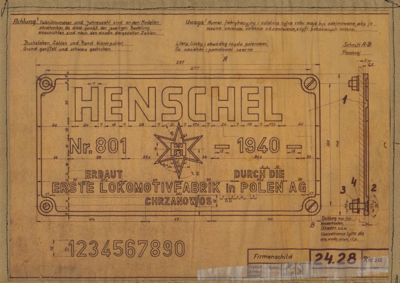 | 22:10, 31 sty 2014 | Henschel Erste Lokomotivfabrik in Polen AG.jpg (plik) | 89 KB | Rysunek techniczny tabliczki firmowej z lat 40. | 1 | |