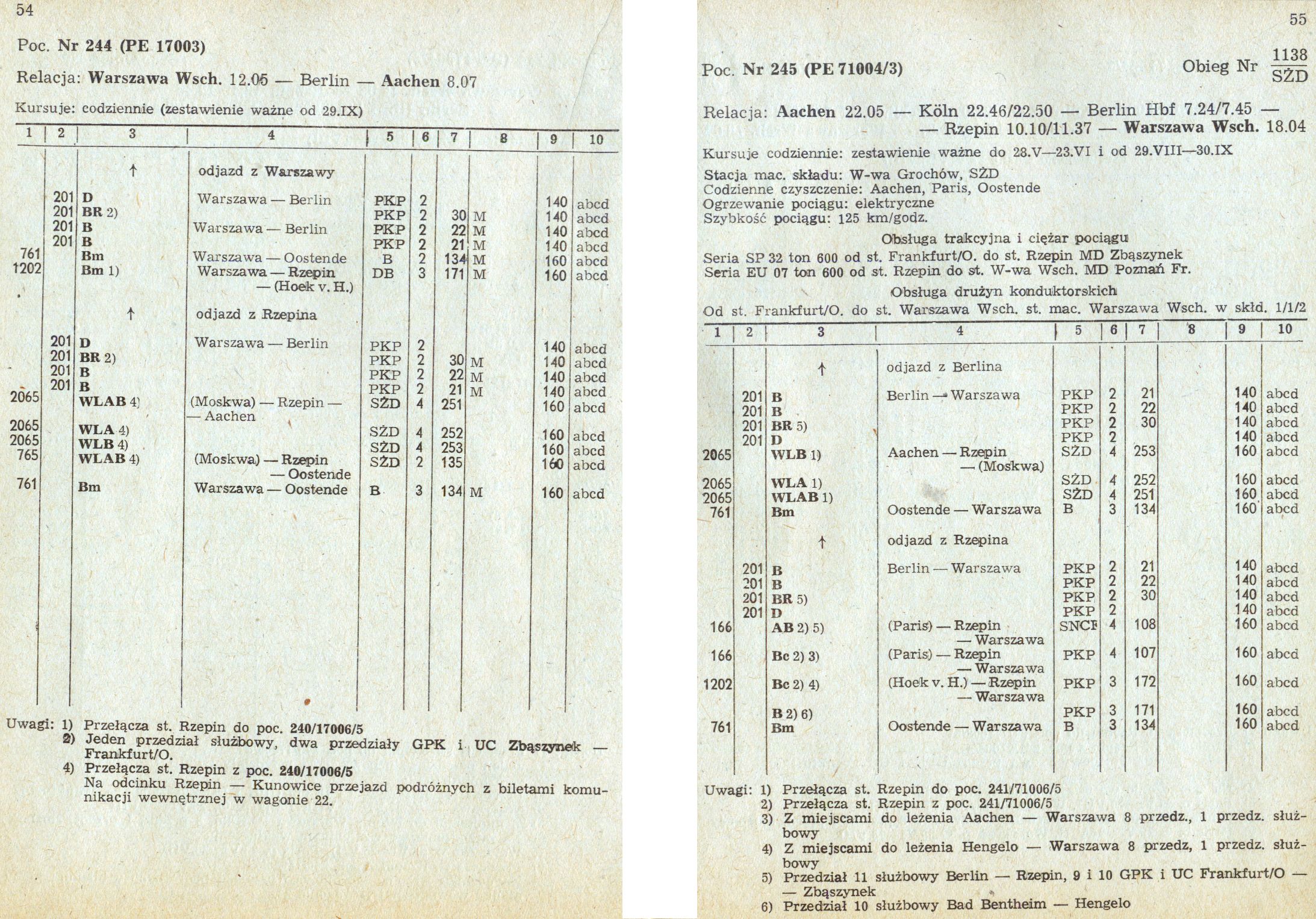 Dodatek 2A do służbowego rozkładu jazdy pociągów Polskich Kolei Państwowych zawierający plan zestawienia obiegu i obsługi składów pociągów pasażerskich międzynarodowych ważny od dnia 27 maja 1990 r.