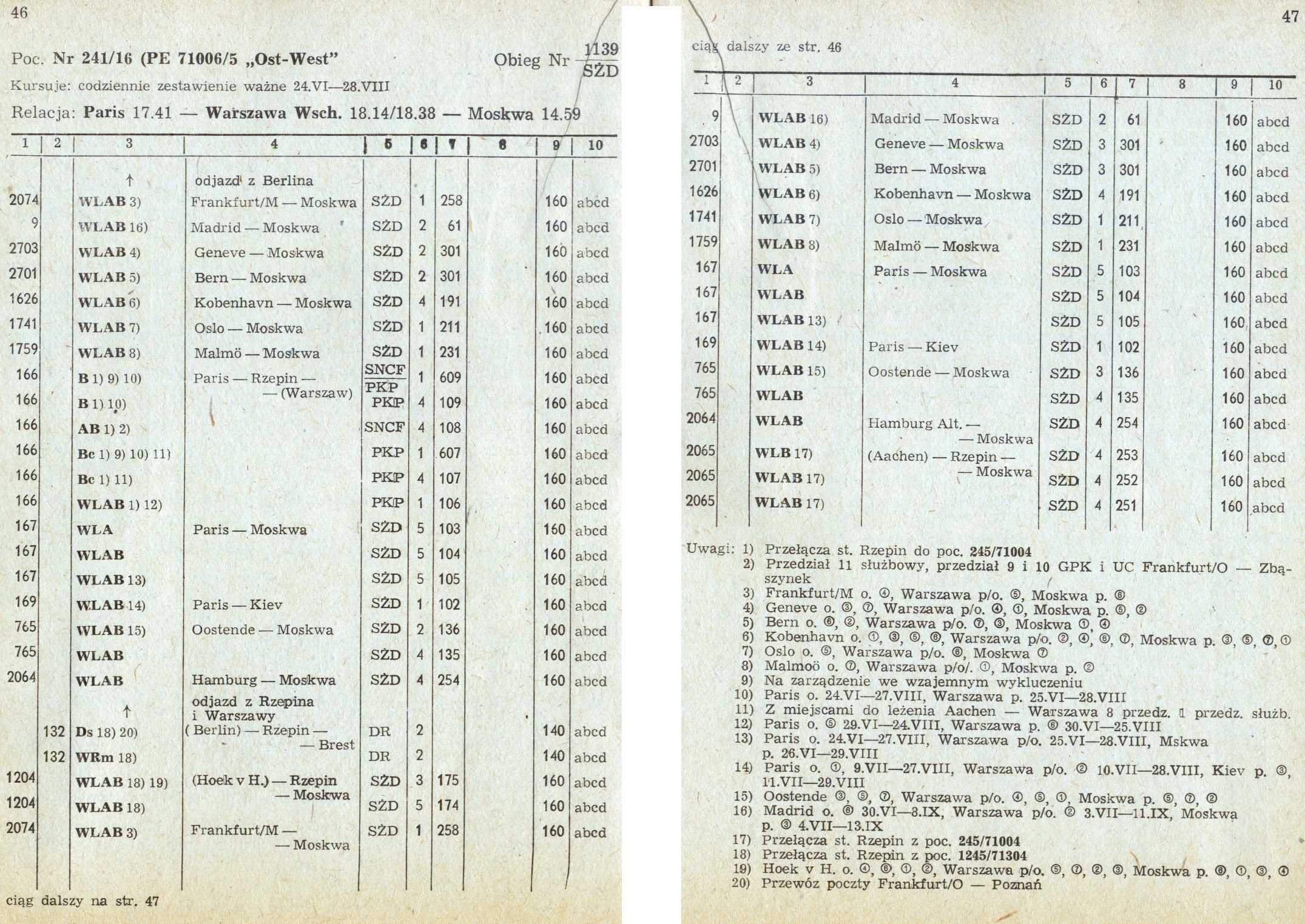 Dodatek 2A do służbowego rozkładu jazdy pociągów Polskich Kolei Państwowych zawierający plan zestawienia obiegu i obsługi składów pociągów pasażerskich międzynarodowych ważny od dnia 27 maja 1990 r.