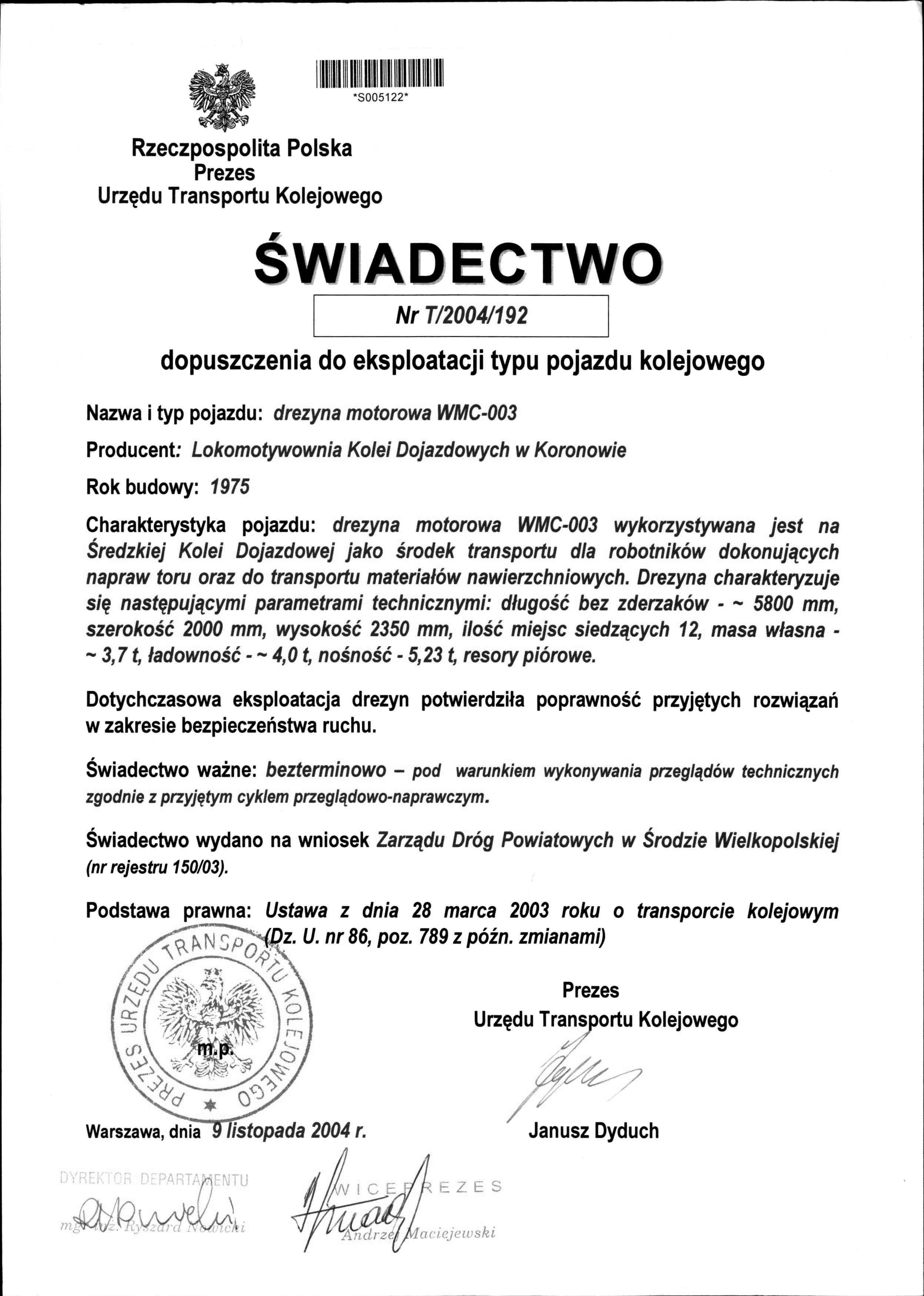 | 22:09, 24 kwi 2014 | T 2004 192.jpg (plik) | 466 KB | Świadectwo typu nr T/2004/192 | 1 | |