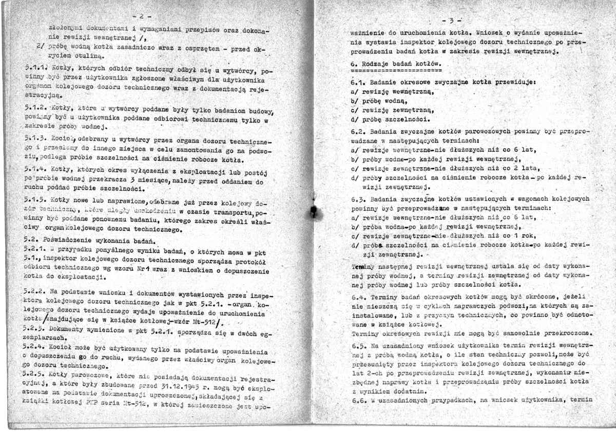 KPa-84 - Warunki techniczne eksploatacji kotłów parowozowych i kotłów ustawionych w wagonach kolejowych oraz wykonywania dozoru technicznego nad tymi kotłami zatwierdzone Zarządzeniem nr 2 Dyrektora Głównego Inspektoratu Kolejowego Dozoru Technicznego z dnia 20 lutego 1984 R. Zarządzenie wchodzi w życie z dniem 1 maja 1984 r. Nakładem PKP Głównego Inspektoratu Kolejowego Dozoru Technicznego.