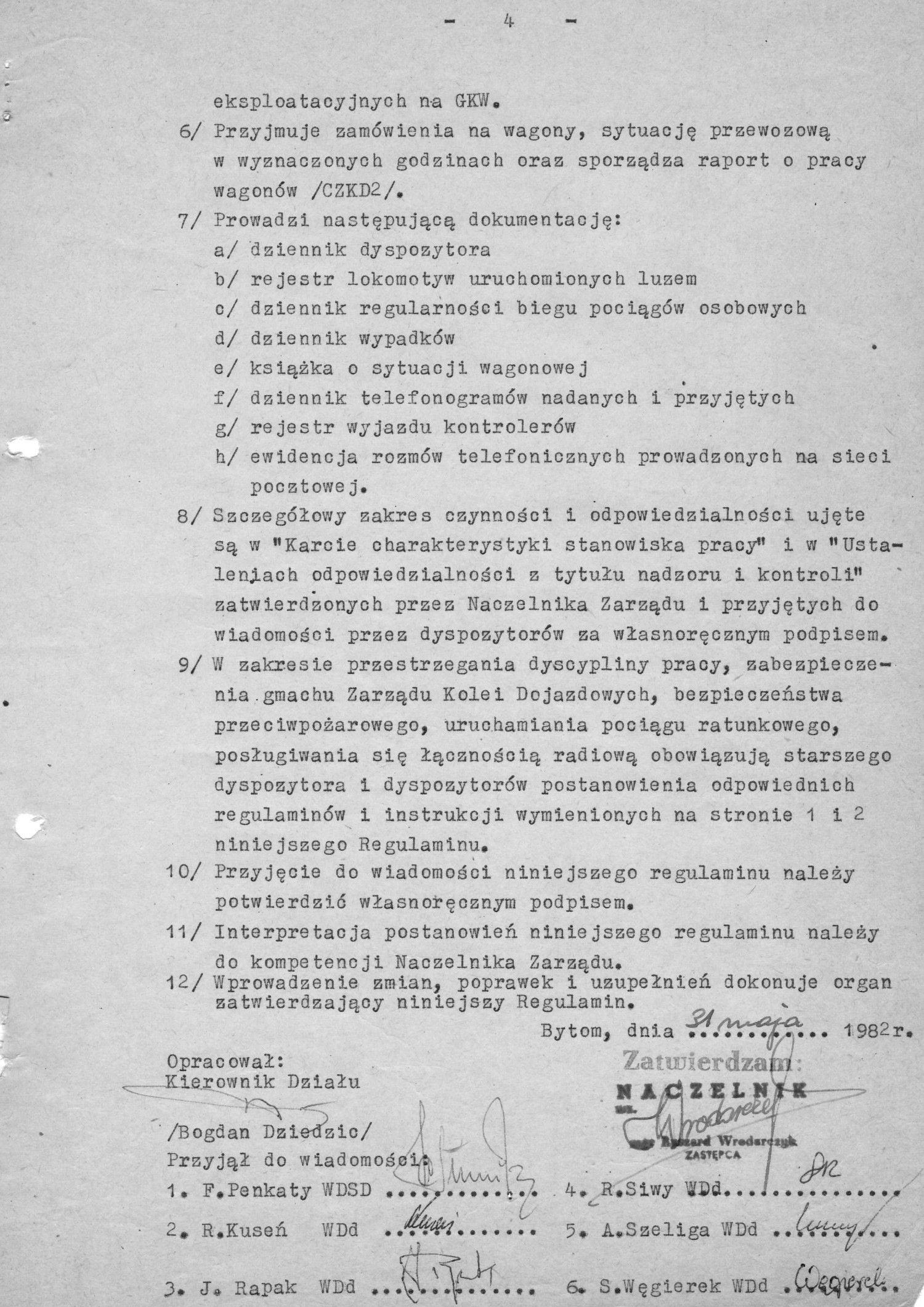Regulamin pracy dyspozytury Zarządu Kolei Dojazdowych ważny od 31 maja 1982 roku