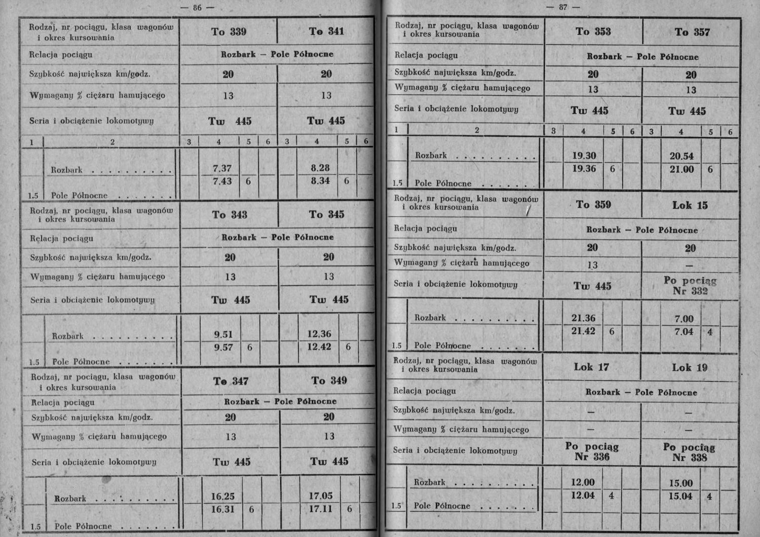 Służbowy rozkład jazdy Górnośląskich Kolei Wąskotorowych ważny od 31 maja 1959 roku