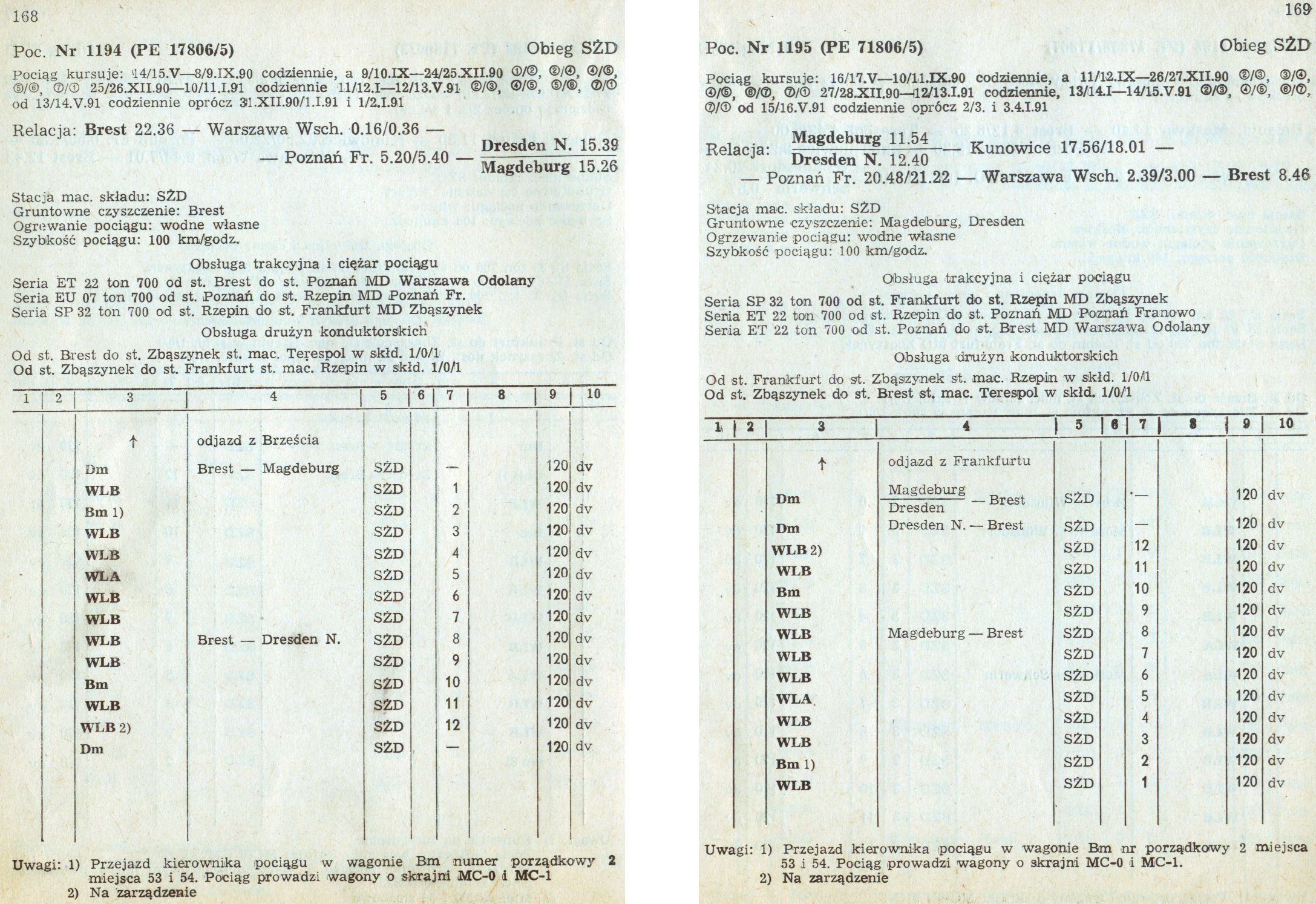 Dodatek 2A do służbowego rozkładu jazdy pociągów Polskich Kolei Państwowych zawierający plan zestawienia obiegu i obsługi składów pociągów pasażerskich międzynarodowych ważny od dnia 27 maja 1990 r.
